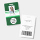 Insigne de l'entreprise ajouter la photo, le logo, le nom et la profession à l'avant et à l'arrière deux textes optionnels (numéro d'identification, département, etc.) et code à barres.
