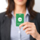 Vous pouvez modifier la couleur de l'arrière - plan. Un design d'entreprise de base qui met en évidence les logos de votre bureau et le nom de votre employé.