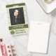 Ces badges photo d'identité ont un thème vert-olive et beige. Ils comprennent la photo, le nom et le titre de l'emploi de votre employé sur le devant, ainsi que le nom de la société / société et le logo de l'entreprise. L'arrière comprend la place pour les informations "si trouvé" (y compris l'adresse et le numéro de téléphone), plus l'espace pour un numéro d'identification et un code à barres. La conception comprend également un arrière - plan motif de grille et un thème de graphique linéaire. Utilisez le modèle facile à personnaliser, puis utilisez l'outil de conception pour effectuer des modifications plus détaillées (comme ajuster la taille du logo ou du code-barres ou supprimer et réorganiser les éléments). Ce design attrayant est parfait pour un directeur de bureau, un assistant administratif, un cadre ou tout employé d'entreprise.