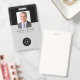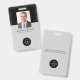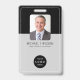 Modèle de badge professionnel élégant noir et gris avec photo d'employé, logo personnalisé, texte et image (code à barres ou code QR). ++++++++++++++++++ Facile à personnaliser de chaque côté avec tous vos détails.