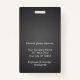 Un badge d'identité d'entreprise moderne et élégant conçu dans une palette de couleurs grises. Facilement personnalisable avec une photo d'employé, son nom, son titre, le logo de l'entreprise et d'autres détails commerciaux. La mise en page comporte une typographie propre pour une apparence professionnelle et claire, assurant une identification facile. Ce badge d'identification est disponible avec des options pour un cordon, un clip métallique ou un support rétractable. Aucune commande minimale requise.