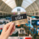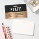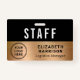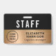 Un badge d'identification de personnel professionnel moderne, d'employé ou d'équipage pour votre entreprise, événement, conférence ou congrès portant le logo de votre entreprise ou organisation contre un arrière - plan métallique en or. Ajoutez un nom et un titre de travail ou l'événement et la date.