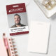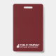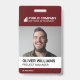 Un badge d'identification employé moderne. Le design comprend votre logo d'entreprise, votre nom d'entreprise et votre ligne d'étiquettes. Il montre une photo d'identité d'employé de grande taille. Les informations peuvent être personnalisées et comprennent le nom de l'employé, le titre de l'emploi et le numéro d'identification de l'insigne. Le dos de l'insigne d'identification montre le logo et le nom de l'entreprise. Couleur : Rouge foncé