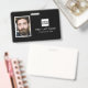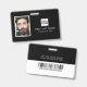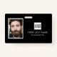 badge d'identification de l'employé de l'entreprise comportant un arrière - plan noir qui peut être changé en n'importe quelle couleur, une photo de votre employé, votre logo d'entreprise, votre prénom, votre nom de famille et votre titre professionnel.