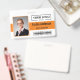 Personnalisez facilement ce nom d'employé personnalisé et badge photo avec votre propre logo d'entreprise et code qr ou code-barres. Disponible avec différentes couleurs et pièces jointes arrière - plans. Pas de quantité minimale de commande.
