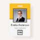 Personnalisez facilement ce nom d'employé personnalisé et badge photo avec votre propre logo d'entreprise et code qr ou code-barres. Disponible avec différentes couleurs et pièces jointes arrière - plans. Pas de quantité minimale de commande.
