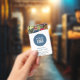 Ce design comprend un badge de votre logo ici, une entreprise, un code à barres photo QR code, employé du personnel d'affaires, nom et titre, marque, un minimaliste simple, professionnel moderne, avec des fournitures de bureau standard, un style bleu simple minimal.