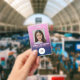 Parties scintillant super de dégradé bleu et violet ID photo de l'employé et badge du logo