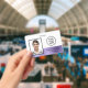 badge simple, élégant et chic d'identification photo employé avec une bande violet faux métallique. Customisez l'avant avec votre logo, le nom de la photo de l'employé et le titre de l'emploi. Au verso, ajoutez le nom de votre société et d'autres informations.