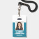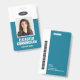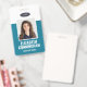 Un badge moderne et simple qui ne détourne pas l'attention des détails importants. Facile à lire de loin. Ajoutez un logo personnalisé et les coordonnées de l'entreprise. Ajoutez le nom de l'employé, sa photo et son titre professionnel. La barre de couleur peut être modifiée pour correspondre aux couleurs officielles de l'entreprise. Au dos, ajoutez plus d'informations telles que l'adresse de retour et le numéro d'identification de l'employé. Parfait pour les logos de forme ovale.