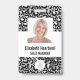Ce badge présente un arrière - plan empreinte de léopard moderne en argent et en faux papier noir et moderne divisé par un bloc de couleur blanche. Customisez-le avec votre photo carré, nom, titre de travail, logo, nom de l'entreprise, adresse ou autres informations, et code à barres en option.