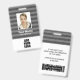 Personnalisez ce badge gris rayé avec nom, photo et logo. Au verso, vous pouvez ajouter des informations utiles comme l'adresse, le site Web, le numéro d'identification et le code à barres.