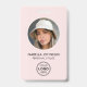 Impressionnez avec un badge d'identification élégant et professionnel. Ce modèle recto verso présente votre photo d'identité en cercle et est personnalisé avec un nom, un logo, des coordonnées et un code QR scannable. Customisez le texte correspondant à votre marque. Ce design moderne conviendra à de nombreux lieux de travail et professions différents, y compris les professionnels d'entreprise, les vendeurs au détail, les consultants en beauté, le personnel de l'hôtel, les petites entreprises, les étiquettes de nom de conférence et plus encore! Couleurs imprimées : rose pâle, noir et blanc.