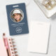 Impressionnez avec un badge d'identification élégant et professionnel. Ce modèle recto verso présente votre photo d'identité en cercle et est personnalisé avec un nom, un logo, des coordonnées et un code QR scannable. Customisez le texte correspondant à votre marque. Ce design moderne conviendra à de nombreux lieux de travail et professions différents, y compris les professionnels d'entreprise, les vendeurs au détail, les consultants en beauté, le personnel de l'hôtel, les petites entreprises, les étiquettes de nom de conférence et plus encore! Couleurs imprimées : ardoise bleu, noir et blanc.