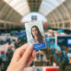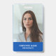 Un badge d'employé d'entreprise moderne, simple et professionnel sur un arrière - plan bleu avec une typographie blanche pour correspondre à votre logo personnalisé comprend la photo et le titre professionnel de l'employé sur le devant et le logo d'entreprise et des informations supplémentaires à l'arrière.