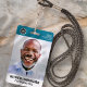 A modern and simple badge that does not distract from the important details. Easy to read from afar. Add a custom logo and company details. Add the employee's name, photo, and professional title. The bar of color can be modified to match the company's official colors. At the back, add more information such as return address and the employee's ID number. Perfect for round shaped logos.