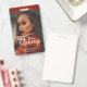 Un badge d'employé d'entreprise de maquilleuse à la mode moderne avec une typographie d'écriture moderne blanche et une photo glamour. Téléchargez votre propre photo glamour.