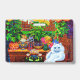 Insigne représentant la peinture animale de Louis Wain Maître de Cat College (1860-1939). Un chat blanc réfléchi aux yeux bleus saisissants se tient à côté d'un assortiment vibrant de belles fleurs. Le majestueux collège de chats se dresse dans l'arrière - plan sous un ciel rose et bleu. Un cadeau merveilleux pour l'art amoureux des chats et anglais.