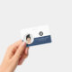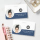 Personnalisez facilement ce badge de nom d'employé minimaliste horizontal personnalisé avec photo, nom, profession et logo d'entreprise. Un design d'entreprise simple avec photo ronde, en bleu marine et blanc entièrement personnalisable à l'avant et à l'arrière avec le même design, sans-serif polices basiques et modernes et un look professionnel et clair. Disponible avec cordon, clip métallique ou avec rétractable. Pas de commande minimum.