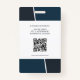 Professional identification card with photo, logo, barcode, and qr code templates included. This modern design style has shades of dark teal and black with white base. Similar design on back, with business address, website address, and a website qr code.