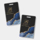 Une version unique d'un badge de métier de maquilleur en géode d'agate abstraite bleu noir et or métallisé avec une initiale en écriture élégante et une signature en script. Parfait pour les salons de beauté ou les conventions ainsi que dans votre boutique. Un style approprié pour d'autres professions pour un style chic.