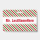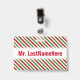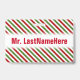 Badge Motif rayé rouge, blanc et vert + Nom de
