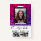 La parties scintillant poster de animal rose et violet et noire scintille délicieusement derrière un modèle photo avec cadre noir et blanc. Mettez facilement à jour le nom et le titre professionnel de chaque badge personnalisé d'employé. Il y a aussi de la place pour un logo de société : supprimer pour laisser vide. Backside présente plus de faux parties scintillant et un modèle d'image parfait pour les codes à barres des employés. Disponible dans de nombreux autres styles et couleurs.