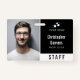 badge d'identification de l'employé avec un design épuré minimaliste en noir et blanc. Ajoutez une photo de l'employé avec le nom et la profession. Personnalisez davantage avec votre logo d'entreprise.