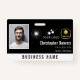 Badge d'employé de bureau noir avec un design épuré minimaliste. Ajoutez une photo de l'employé avec le nom et la profession. Personnalisez encore plus avec trois logos et le nom de la société.