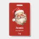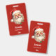Nom tag avec une joyeuse illustration d'un Père Noël de style vintage avec joues rouges roses. portant son chapeau de Père Noël rouge classique et son grand ours blanc. Un spring de saint ajoute à l'esprit festif de fête de ce design.