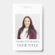 Un simple badge photo avec votre nom et votre titre ajouté. Idéal pour le titre comme, service à la clientèle, manager, ventes, marketing, etc. Identifiez-vous à ceux qui ont besoin de votre expertise en affaires et de votre aide, lors de réunions et d'événements à l'interne. Ajoutez une pièce jointe à partir de styles tels que : cordon, rétractable ou métal.