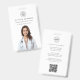 Un badge d'identification d'employé minimaliste élégant avec typographie classique sur un arrière - plan blanc épuré et minimaliste. Le texte, le logo et le code QR peuvent être facilement customisés pour une touche professionnelle qui correspond à l'image de marque de votre clinique et se fondre bien dans un cadre médical professionnel. Un design simple, minimaliste et contemporain pour un cadre hospitalier, clinique ou médical.