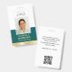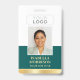 Créez une apparence professionnelle avec ce badge d'identification personnalisé. Un modèle simple et élégant avec votre photo d'identité, nom, titre d'emploi, logo de l'entreprise et code QR scannable. Tout le texte peut être customisé ou supprimé pour répondre à vos besoins. Cette conception élégante conviendra à de nombreux lieux de travail et professions différents, y compris les professionnels d'entreprise, les vendeurs au détail, les consultants en beauté, le personnel de l'hôtel, les petites entreprises, les étiquettes de nom de conférence et plus encore! Couleurs imprimées : vert turquoise et blanc avec un dégradé d'or.