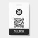 Personnalisez facilement ce badge de nom professionnel personnalisé sans photo, avec un modèle de code qr facile à copier et à coller, le code de la barre de numérisation et le logo d'une grande entreprise. Un design d'entreprise simple en noir et blanc entièrement personnalisable en tailles avant et arrière, sans-serif polices de base et moderne et un look professionnel et clair, parfait pour les employés de petite entreprise, patron, invités. Ces fournitures de badges d'identification d'entreprise sont disponibles avec cordon, clip métallique ou avec rétractable. Pas de commande minimum, mais économiser de l'argent et profiter de rabais Zazzle par plusieurs commandes!