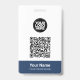 Personnalisez facilement ce badge de nom professionnel personnalisé sans photo, avec un modèle de code qr facile à copier et à coller, le code de la barre de numérisation et le logo d'une grande entreprise. Un design d'entreprise simple en bleu marine et blanc entièrement personnalisable en tailles avant et arrière, sans-serif polices de base et moderne et un look professionnel et clair, parfait pour les employés de petite entreprise, patron, invités. Ces fournitures de badges d'identification d'entreprise sont disponibles avec cordon, clip métallique ou avec rétractable. Pas de commande minimum, mais économiser de l'argent et profiter de rabais Zazzle par plusieurs commandes!