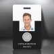 Ajoutez votre propre logo Professionnel Entreprise Nom de travail, Photo et Titre du travail Carte d'identité noir et blanc Photo Insigne commercial vertical. Cette conception est simple et facile à utiliser en changeant votre prénom et votre nom ainsi que votre titre de travail et votre plan de tête d'entreprise.