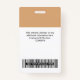 Personnalisez facilement ce badge de nom professionnel personnalisé sans photo, avec le code de la barre de numérisation et le logo d'une grande entreprise. Un design d'entreprise simple en chameau beige et blanc entièrement personnalisable en tailles avant et arrière, sans-serif polices de base et moderne et un look professionnel et clair, parfait pour les employés de petite entreprise, patron, invités. Ces fournitures de badges d'identification d'entreprise sont disponibles avec cordon, clip métallique ou avec rétractable. Pas de commande minimum, mais économiser de l'argent et profiter de rabais Zazzle par plusieurs commandes!