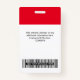 Personnalisez facilement ce badge personnalisé de nom d'employé avec ou sans photo, code Qr, code de barre d'analyse et logo d'entreprise. Un design d'entreprise simple en rouge et blanc entièrement personnalisable en tailles avant et arrière, sans-serif polices de base et moderne et un look professionnel et clair. Disponible avec cordon, clip métallique ou avec rétractable. Pas de commande minimum.