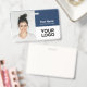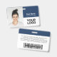 Personnalisez facilement ce badge personnalisé de nom d'employé avec photo, code à barres d'analyse et logo de l'entreprise, avec nom de personne, profession, code à barres d'identité optionnel, avec clip métallique inclus. Un badge de marque utile pour identifier le personnel, les visiteurs ou les invités. Un design d'entreprise simple avec une grande photo en bleu marine et blanc entièrement personnalisable en tailles avant et arrière, dans n'importe quelle couleur arrière - plan, sans-serif polices de base et moderne et un look professionnel et clair. Un outil utile pour les événements d'entreprise, les réunions, les nouvelles et les célébrations. Créez plus de carte d'identification de badge photo d'entreprise en différentes couleurs pour toute catégorie que vous devez identifier : personnel, visiteurs ou invités. Disponible avec ou sans nacelle, clip métallique ou avec rétractable. Pas de commande minimum.