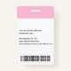 Créez votre propre plastique PVC personnalisé, durable, ne s'estompera pas ou déchirera, moderne cool rose clair et blanc, nom badge photo d'identité, avec choix de pièces jointes - lanière, clip métallique, rétractable, ou aucun. Pour personnaliser, entrez le nom de l'employé / du personnel / de l'exécutif, sa désignation, ainsi que toute information supplémentaire comme la pièce d'identité de l'employé, l'émission et la date d'expiration de l'insigne, en cas de perte retour à & l'adresse, etc. Ajoutez ensuite la photo de l'employé / du personnel / de l'exécutif, ajoutez le logo de l'entreprise / de l'entreprise, et ajoutez le code barre. Pendant que vous tapez/concevez, vous pourrez voir un aperçu de votre badge, tout au long du processus. Idéal pour les petites entreprises, les entreprises, l'école, le restaurant, le bureau, le concert, la vente au détail, l'hôpital, la clinique, et pour les employés, le personnel, le médecin, l'enseignant, l'étudiant.