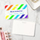 Un motif arc-en-ciel et bandes blanches avec un espace pour un nom et des pronoms personnalisés.