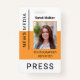 Presse ID média de masse photo employé jaune Badge. Identifiant de presse personnalisé - un badge élégant avec le logo de votre journal ou de votre chaîne d'information, photo, nom, titre de travail, et plus si nécessaire. Facile à personnaliser avec vos détails. Convient également aux correspondants, photographes, professionnels des médias, journalistes et journalistes. Veuillez noter que la couleur, les polices et les tailles arrière - plans du texte peuvent être modifiées.