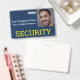 Ce badge d'identification personnalisé comporte un titre "SÉCURITÉ" imprimé en jaune sur la partie inférieure sur un arrière - plan bleu. Un exemple de photo de garde de sécurité est placé sur la droite que vous pouvez personnaliser pour inclure votre propre pièce d'identité photo. Le nom de l'entreprise et le nom de l'employé sont imprimés à gauche de l'image.