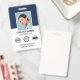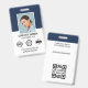 Créez une apparence professionnelle avec ce badge d'identification élégant. Un simple modèle personnalisé avec votre photo d'identité, nom, titre de travail, logo de l'entreprise et symboles d'accréditation. Les détails de retour sont au verso, ainsi que des informations supplémentaires, et un code à barres ou un code QR. Customisez le texte pour convenir à votre entreprise. Idéal pour de nombreux lieux de travail différents, y compris les professionnels d'entreprise, les consultants d'affaires, les vendeurs au détail, le personnel médical et plus. Couleurs imprimées : bleu marine très foncé, noir et blanc.