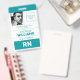 Infirmière autorisée professionnelle, simple et moderne badge vertical turquoise et blanc avec logo personnalisé. Sur le devant, vous trouverez une photo personnalisée et le logo de l'hôpital, avec le nom et l'emplacement de l'hôpital, le nom de la personne, le numéro d'identification et le numéro d'assurance-maladie, tous ces éléments peuvent être changés et customisés. Pour une personnalisation supplémentaire, veuillez contacter le concepteur. *Crédit photo : ©campb_LLs