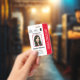 Personnalisez facilement ce badge d'identification photo professionnel de style rouge moderne avec vos détails personnalisés.