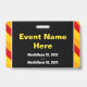 Cette conception de badge d'écumage comporte le message "CONFERENCE OFFICIAL". Il présente également des rayures jaunes, rouges et oranges qui attirent l'oeil. Le verso comporte un nom d'événement personnalisable et une ou plusieurs dates d'événement. [~Z0000286]