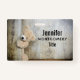 Un nom avec une photo de chéri d'un mignon ours en peluche, debout près d'un mur en bois rustique / fond.