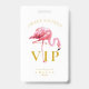 Célébrez votre 16e anniversaire avec ces invitations amusantes de style badge d'été ou utilisez le magnifique fond pour n'importe quel événement. Un flamant rose audacieux sur le devant présente le VIP tandis que des feuilles tropicales bordent un cadre blanc pour les détails de votre invitation au verso. Personnalisez facilement avec votre nom, événement et dates en utilisant le modèle fourni. Recherchez ID922 pour voir tous les produits de cet ensemble.