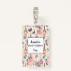 Nom badge avec un élégant motif. Roses roses, papillons gris-bleu et tour Eiffel. Une motif à thème française.
